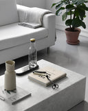O carafă înaltă, subțire care poate fi folosită pentru orice băutură, această carafă realizată din sticlă prelucrată prin suflare are un capac din alamă sau oțel. O puteți folosi la micul dejun pentru suc de portocale sau pentru apa de pe birou. Carafa este disponibilă în două variante, din sticlă trasparentă sau fumurie.