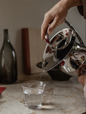 In egala masura practic si elegant, profilul amplu al carafei Etruscan este realizat din otel inoxidabil lustruit ca o oglinda, oferindu-i un finisaj rezistent si rafinat. Proportiile sale accentuate includ un maner inalt si curbat in partea superioara, precum si un gura de scurgere conica pentru o turnare usoara. Designul sau voluminos creeaza un impact vizual puternic atat atunci cand este folosit pentru servirea bauturilor reci la masa, cat si ca obiect decorativ sau vaza pentru flori taiate.