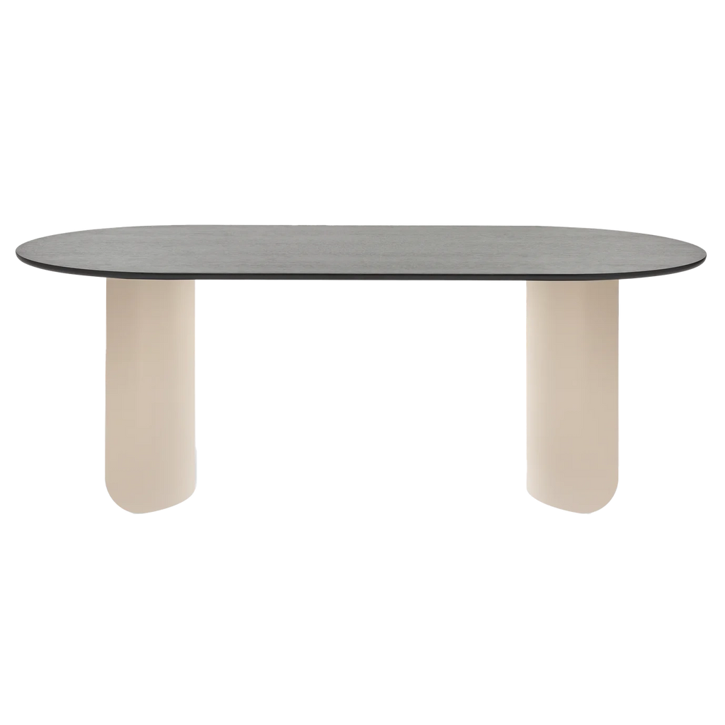 Masă de dining Plateau ovală - Blat Negru, Picioare Sand
