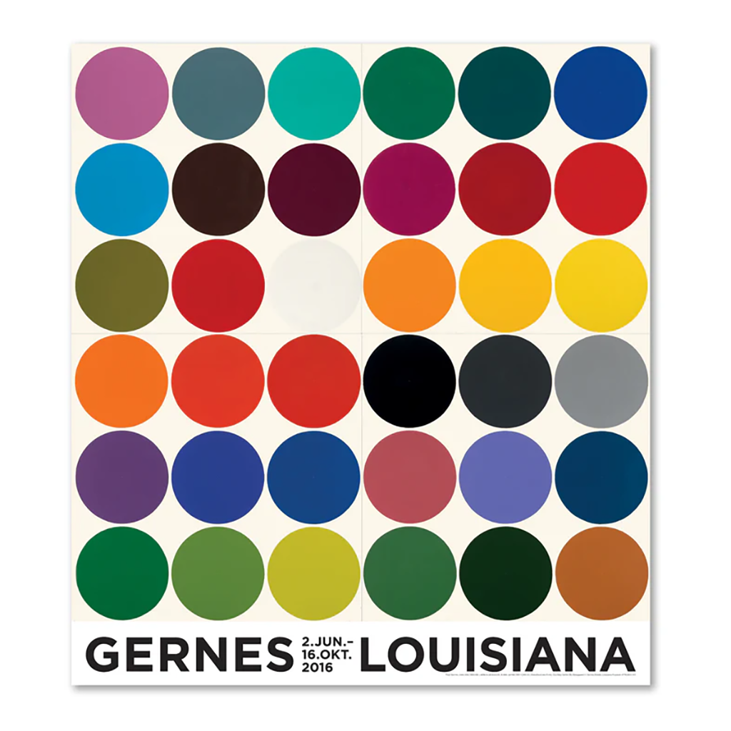 Posterul Louisiana prezinta lucrarea Untitled - dot (1962–68) a artistului danez Poul Gernes (1925–1996), o figura-cheie in scena artistica a Danemarcei postbelice. Gernes a revolutionat perceptia asupra artei si asupra rolului artistului in societate, punand accent pe accesibilitate si impact emotional, in defavoarea interpretarii intelectuale. Lucrarile sale publice, de mari dimensiuni si cu un stil vibrant – precum cinematograful Palads si Spitalul Herlev – reflecta convingerea sa ca arta are puterea de a aduce bucurie.