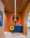 Caruso vă invită să vă așezați, să luați o pauză și să redescoperiți magia de a asculta și a vedea un obiect de mobilier care redă și muzică bună. Designul său e la marginea ironiei, puțin futurist, puțin nostalgic, reușind să combine hi-tech-ul cu traiul de zi cu zi, pentru o experiență multisenzorială.